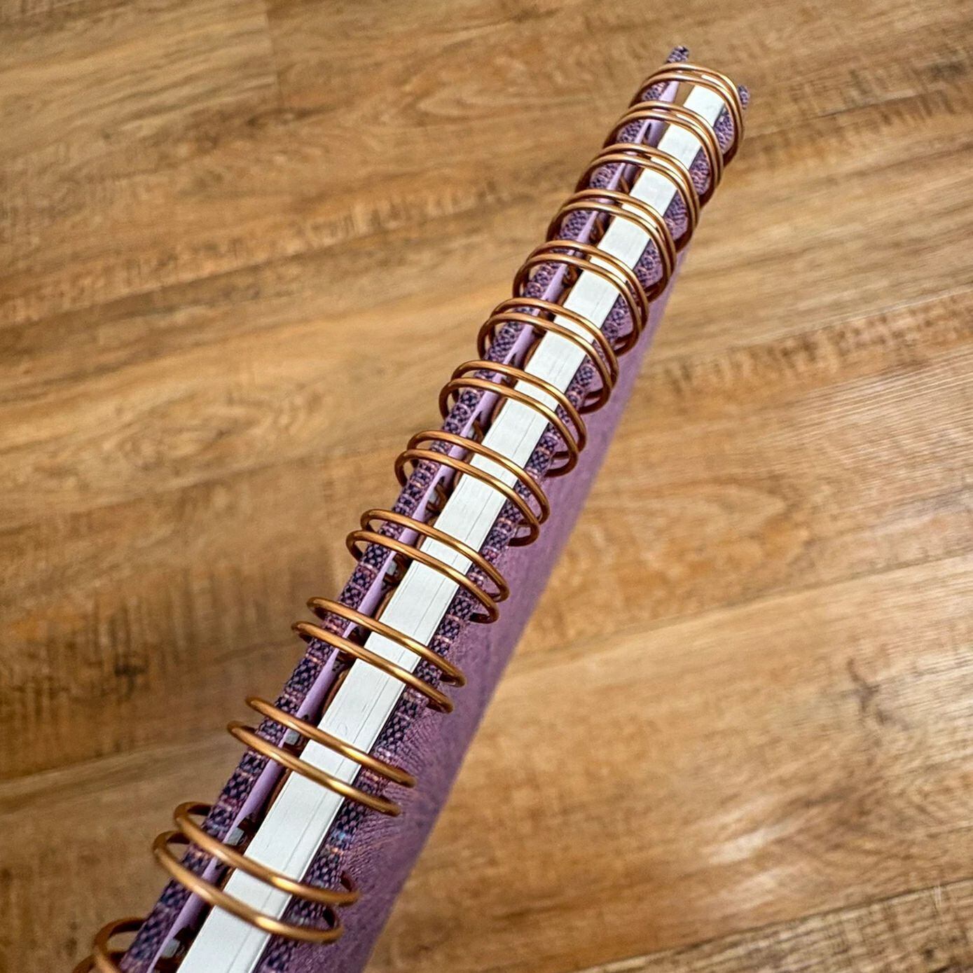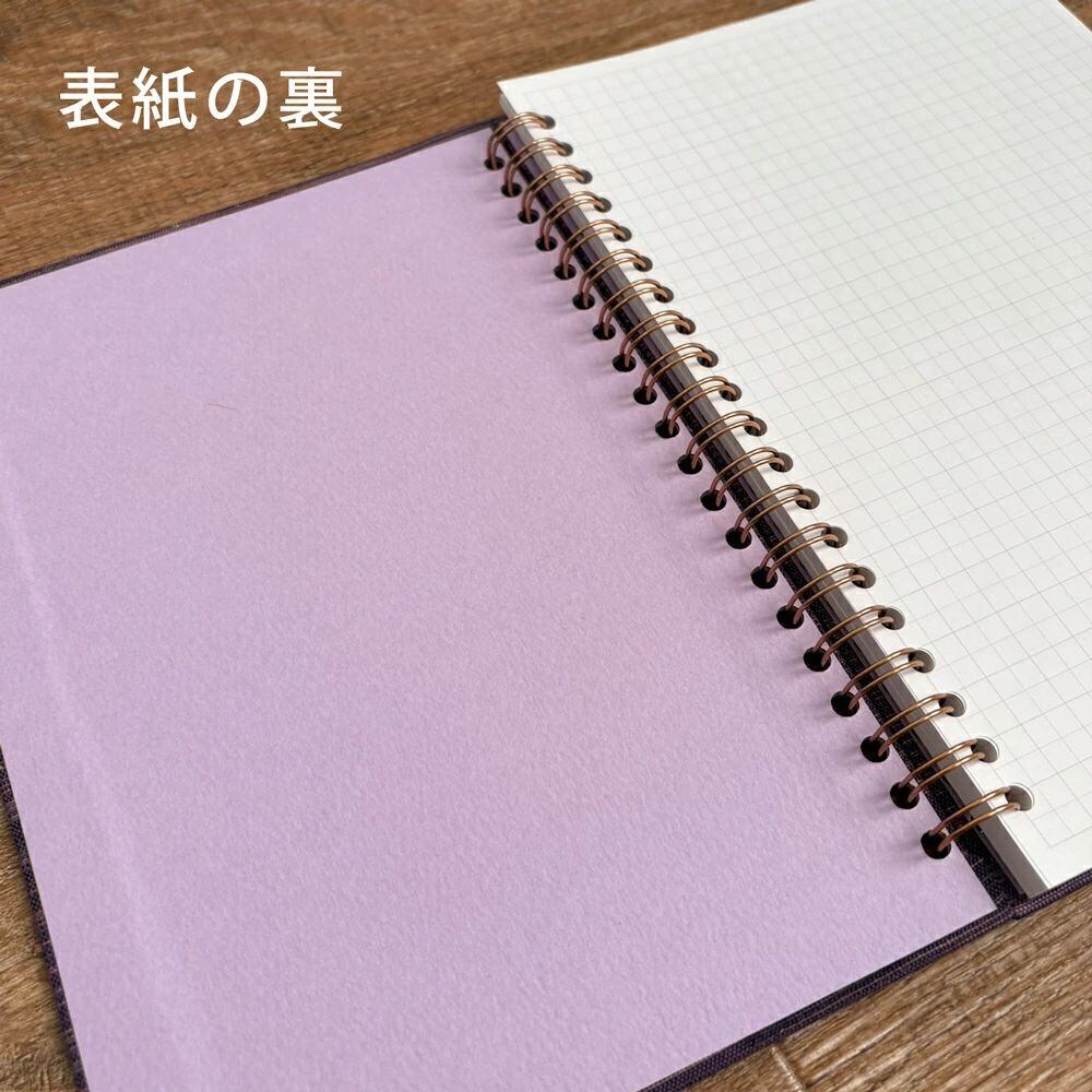 このライラックカラーの着物をリユースしたノートは、日本の伝統的な美しさを新しい形でお楽しみいただける商品です。エレガントなライラック色は、心を和ませる優しさをもたらし、また着物の特性を活かした手触りが心地よさを提供します。ツインリングで綴じた形状は、ページを自由に開閉できる使いやすさと、あなたのアイデアを存分に表現できる場所を提供します。中紙は方眼仕様なので、アイデアやメモをすっきり整理することができます。この特別なノートで、あなたの日々のインスピレーションを形にしてみませんか。