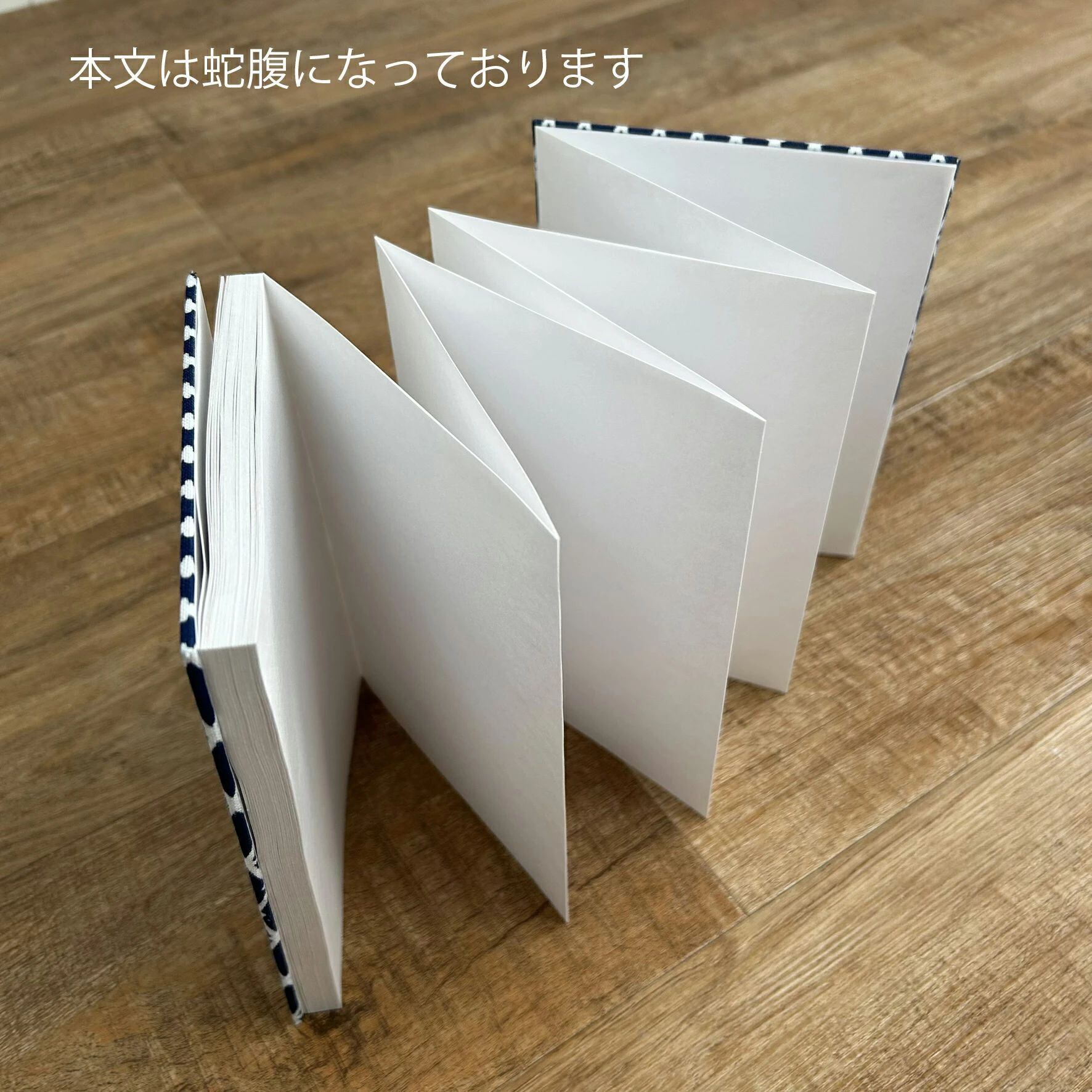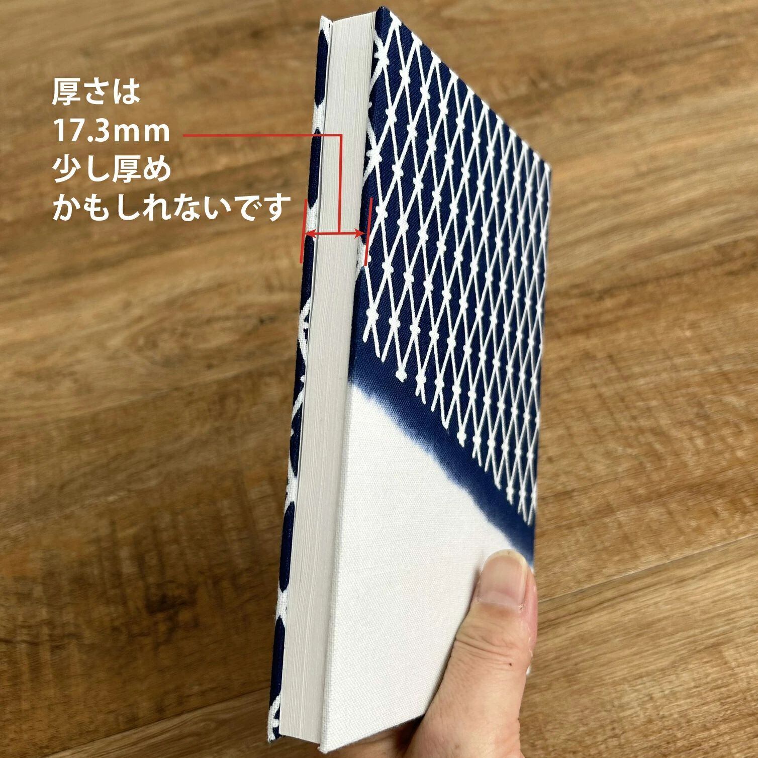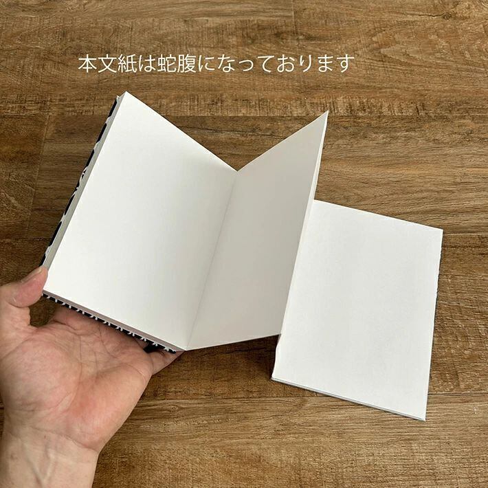 経本折のノートを作りました。経本折といわれてもほとんどの方が「?」が頭に浮かぶかとおもいます。これは、2つに折られた用紙をくっつけて蛇腹状になっているもので、いわゆる御朱印帳といわれるものと同じ作りです。本文紙には、奉書紙という和紙を使っていて御朱印帳同様白紙になっております。表紙/裏表紙は弊社得意の手ぬぐいをあしらったものになります。 このノートを御朱印帳として使うのもよろしいですが、横長に文字や図面を展開して書き綴るのも面白いと思います。今までに気づきことなかった新しいアイディアが思い浮かぶかもしれません。