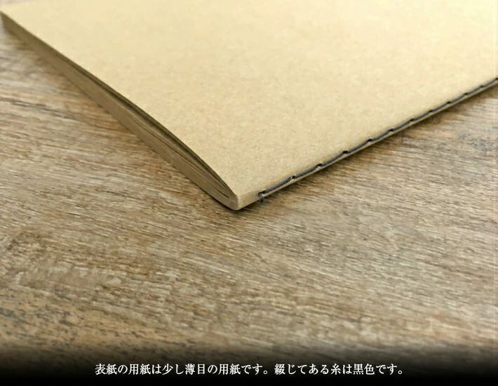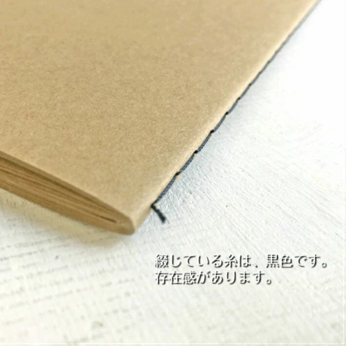 普段糸で綴じるノートは白の糸を使うことが多いのですがが、色付きの糸で綴じてます。サイズがちょこっと大きいです。