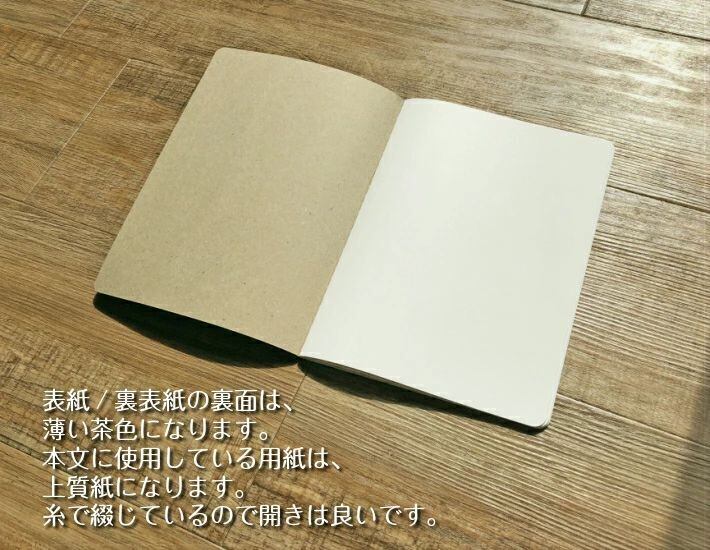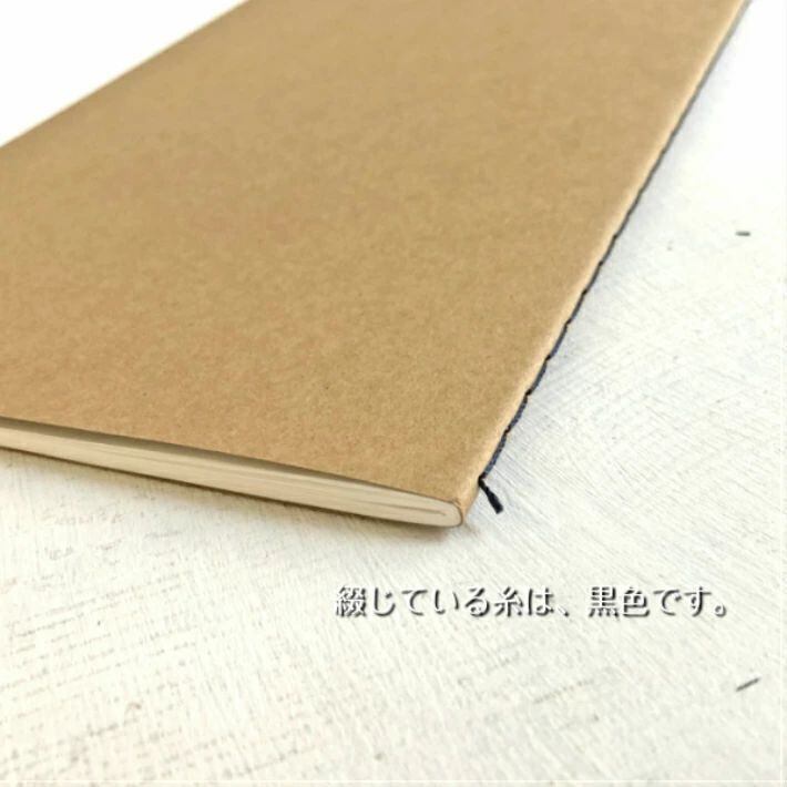 普段糸で綴じるノートは白の糸を使うことが多いのですがが、色付きの糸で綴じてます。サイズがちょこっと大きいです。