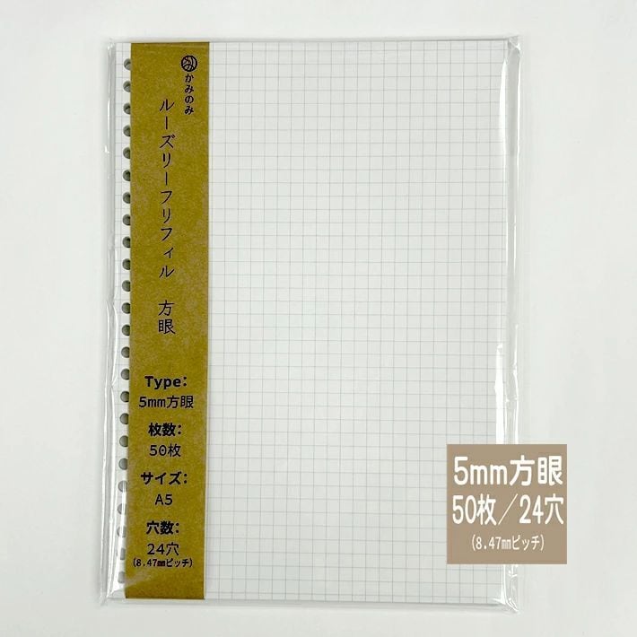 このルーズリーフリフィル 方眼は、細かな方眼ラインが施されたデザインで、あなたのメモや計画を整理するのにぴったりです。さまざまなアイデアや考えを、すっきりとした形で記録できるように設計されています。専用のルーズリーフノートに差し込むことにより、必要なページを追加したり、並び替えたりと、自由にカスタマイズ可能です。勉強や仕事、趣味の活動でも幅広くご利用いただけるアイテムです!整理整頓がしやすく、思いついたことをすぐに書き留められる安心感を与えてくれます。A5/24穴用リフィルです。