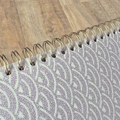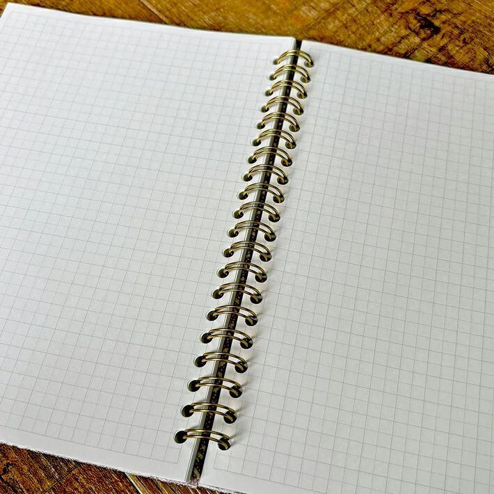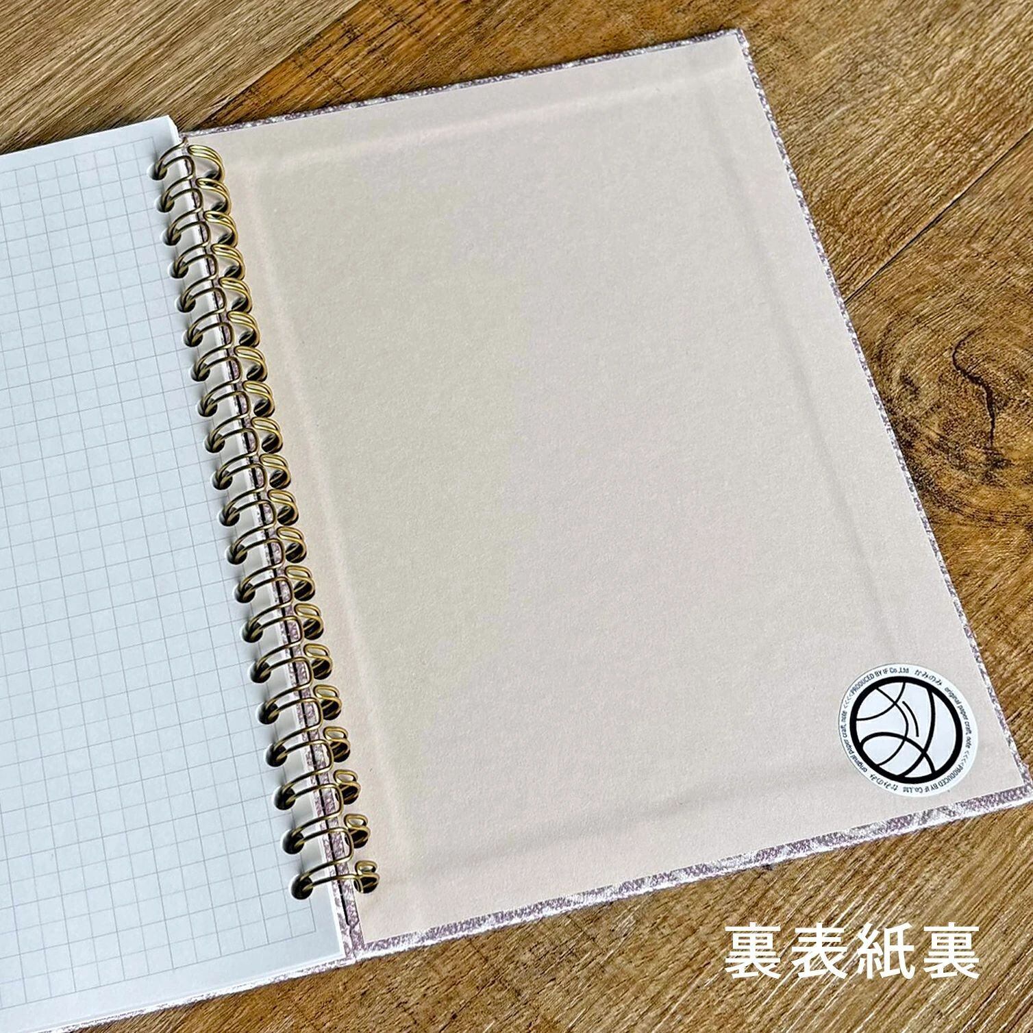 この着物を表紙としてリユース したノートです。伝統的青海波のデザインが施された着物の美しさをアップサイクルした、個性的で魅力的なアイテムです。あなたのメモやアイデアに特別な彩りを加えます。A5サイズのツインリングノートは、方眼の中紙を採用しており、快適に書き込みながら、整理整頓が容易です! 日々の学びや仕事、趣味の追求に、幅広くご使用いただける一品です。思いついたことをすぐに記録できる、頼もしい相棒として活躍します。