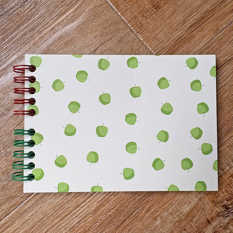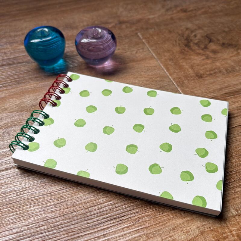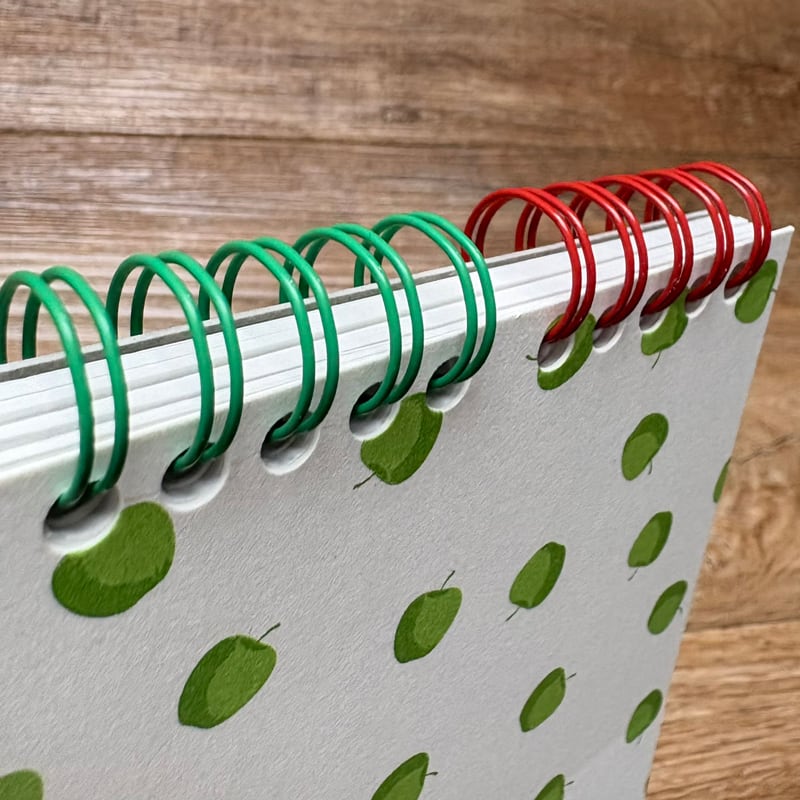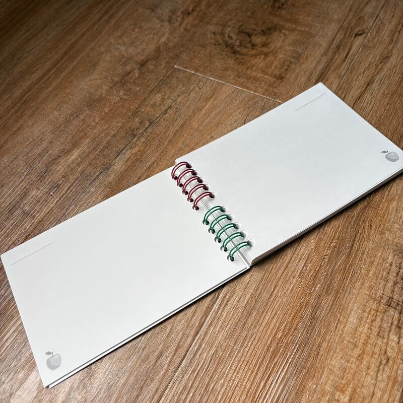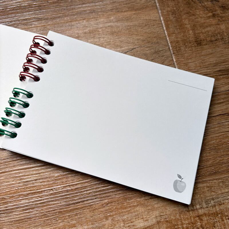 青りんごの可愛らしい表紙が特徴的な「手のりメモノート」です。手のひらサイズで気軽に持ち運べるため、アイデアやメモをさっと取り出すのにぴったりです。表紙と裏表紙に固い紙を使用しているので、片手でもってもへなったりしません。ツインリング綴じを採用しているため、ページが開きやすく、自由な記入が可能です。日常のちょっとしたメモから、アイデアの sketches まで幅広くご活用いただける商品です。
