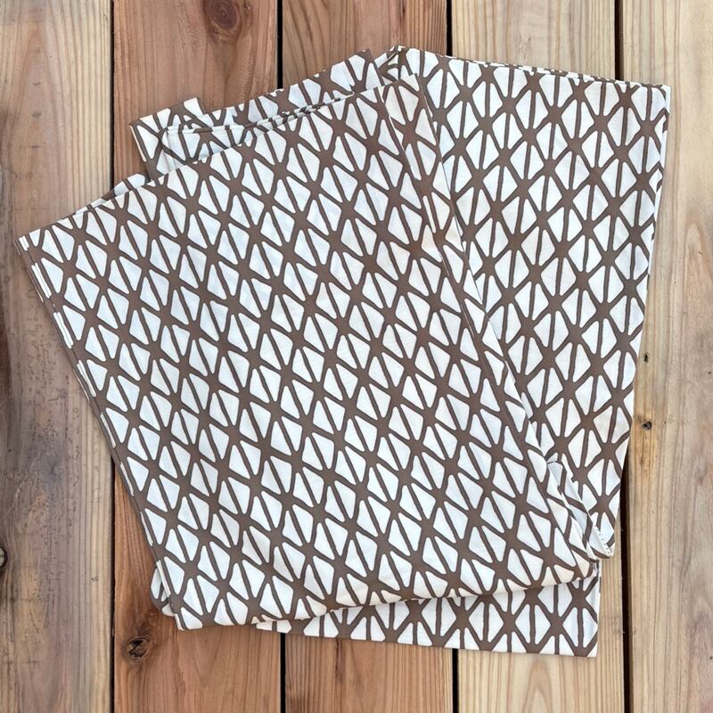 手触りの良い茶色と白の幾何学模様の布表紙は、ひとつひとつ柄の出方が異なるため、