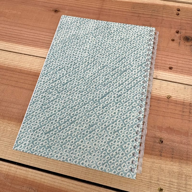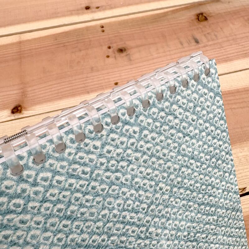 緑の絞り染めの着物をリユースしたA5ノートが出来ました。