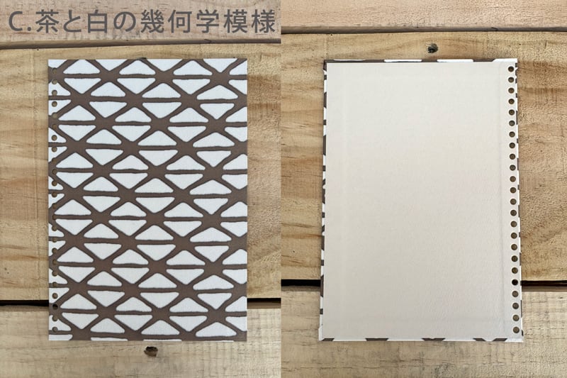 茶色の幾何学模様が主張しすぎない配色なので、日記やアイデアノートの記録にもピッタリな表紙です。