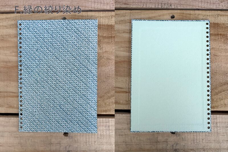 落ち着いたグリーンの色合いに、和の趣を感じさせる絞り染めの柄です。使うほどに愛着が深まる表紙です。