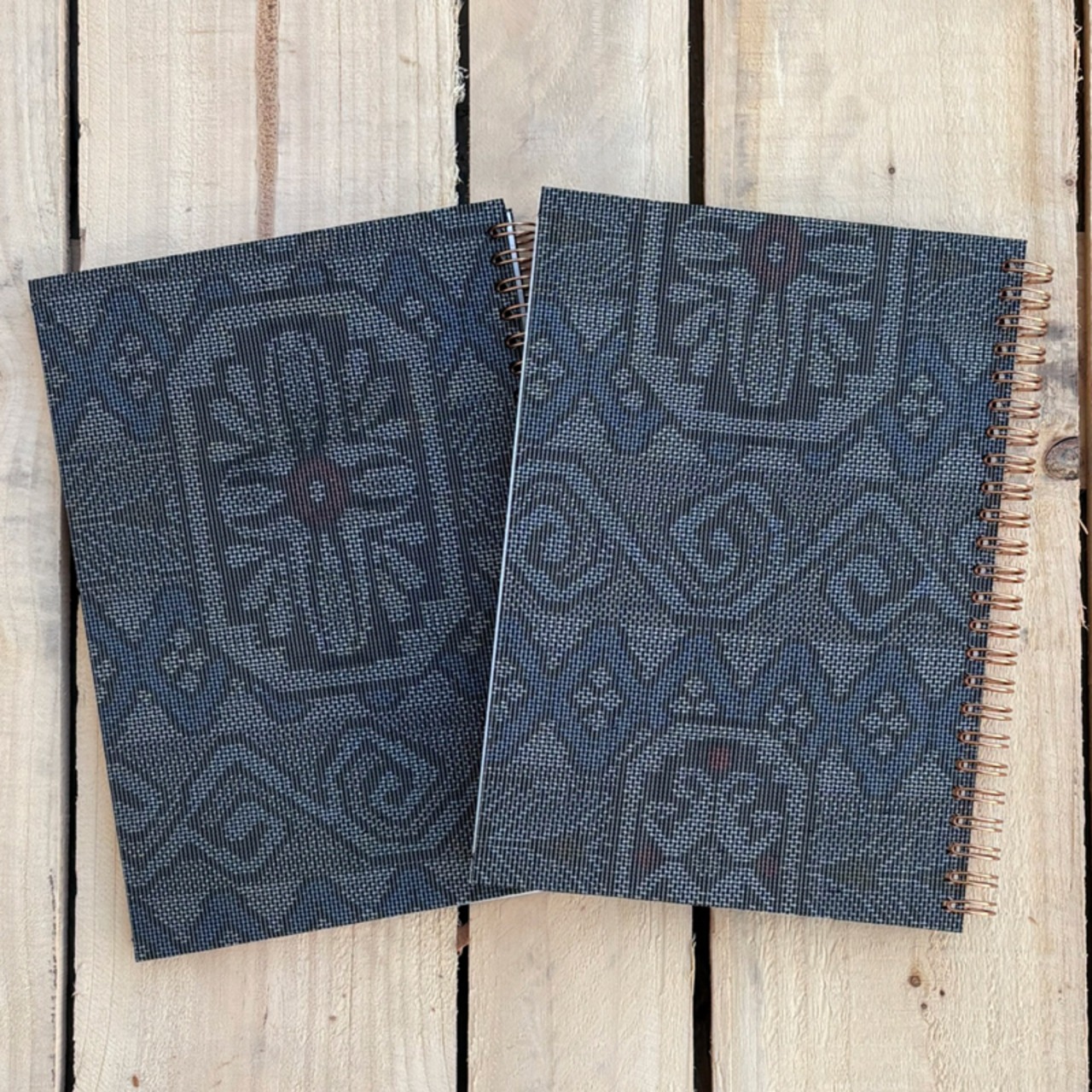 This notebook features a fabric cover with a traditional Japanese pattern.