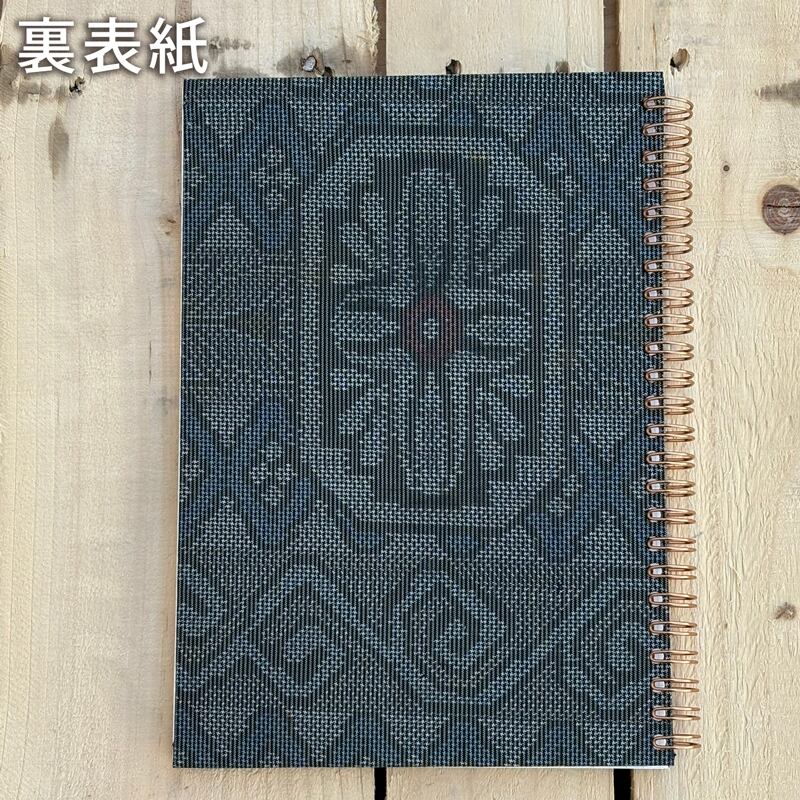藍地に花菱文様が入った布表紙のリングノートです。